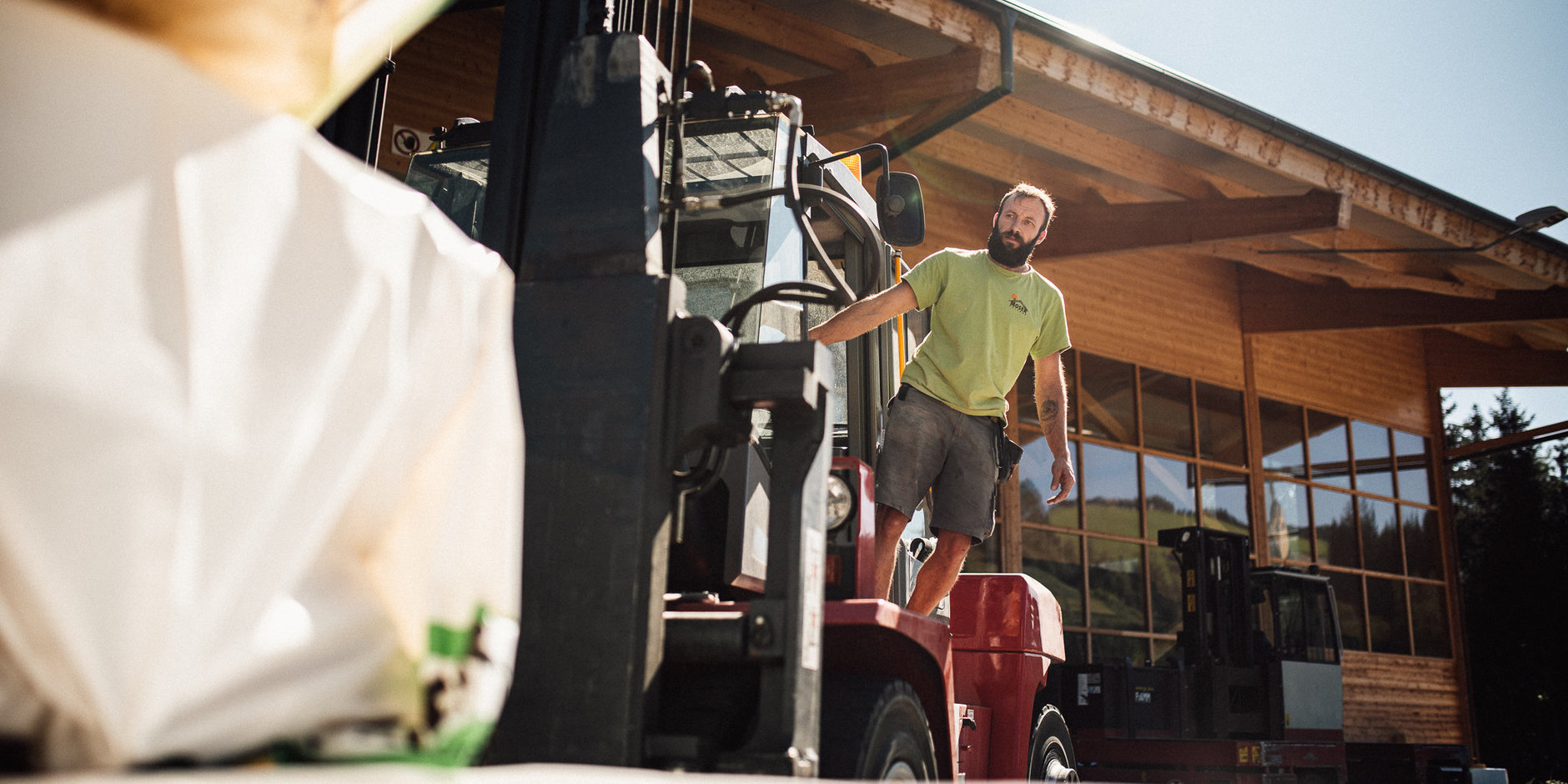 Una volta ultimata la lavorazione, gli elementi in legno vengono trasportati al cantiere in tutta sicurezza e qui installati. Affinché tutto avvenga senza intoppi, ci avvaliamo di diversi veicoli e macchinari.