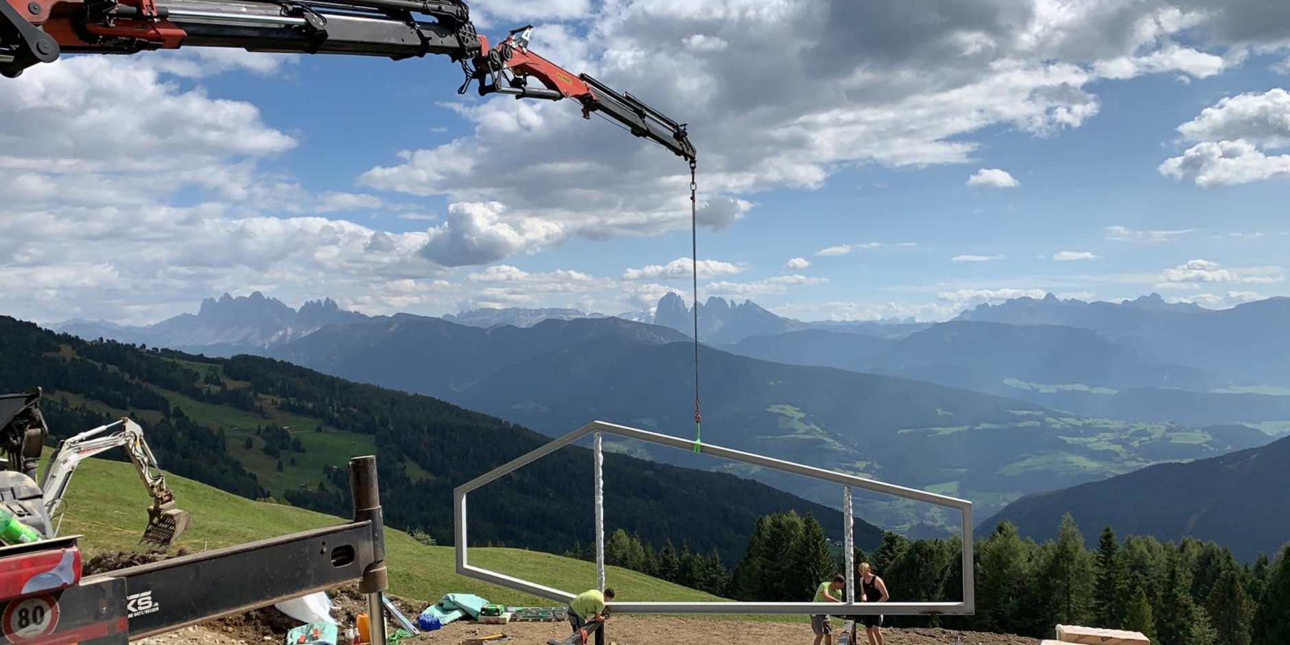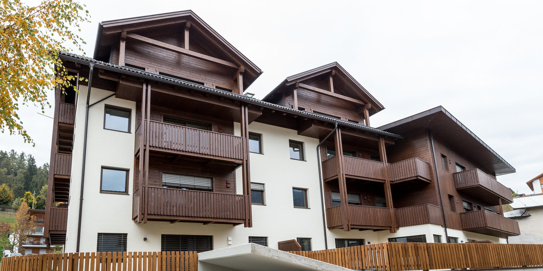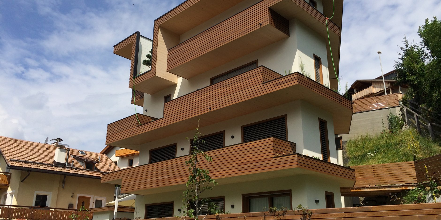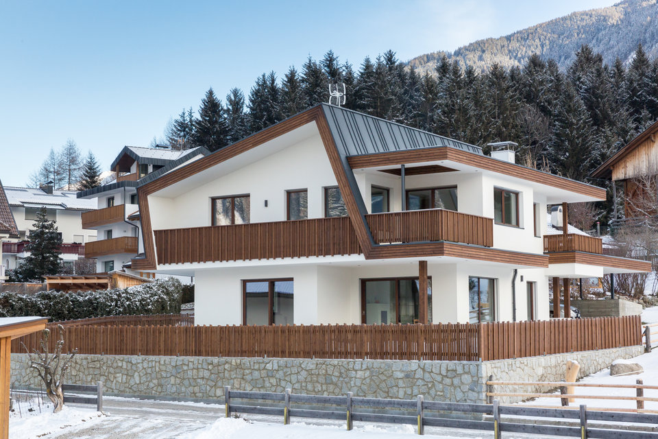 Großzügige Balkone und lichtdurchflutete Räume sorgen für Wohlfühlatmosphäre im modernen Einfamilienhaus. Das gesamte Gebäude ist in Massivholzbauweise ausgeführt. Hier wird das Element Holz zeitgemäß in Szene gesetzt. Ein besonderes Highlight: das begrünte Steildach. Es betont die nachhaltige Bauweise des Projekts.